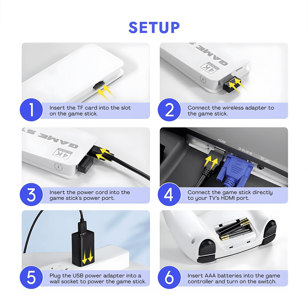 Setup is straightforward: plug into HDMI, power it, and start playing from the on‑screen menu—no drivers, installations, or internet setup required. This low friction means it is accessible even to non‑technical users and perfect for quick game nights. -