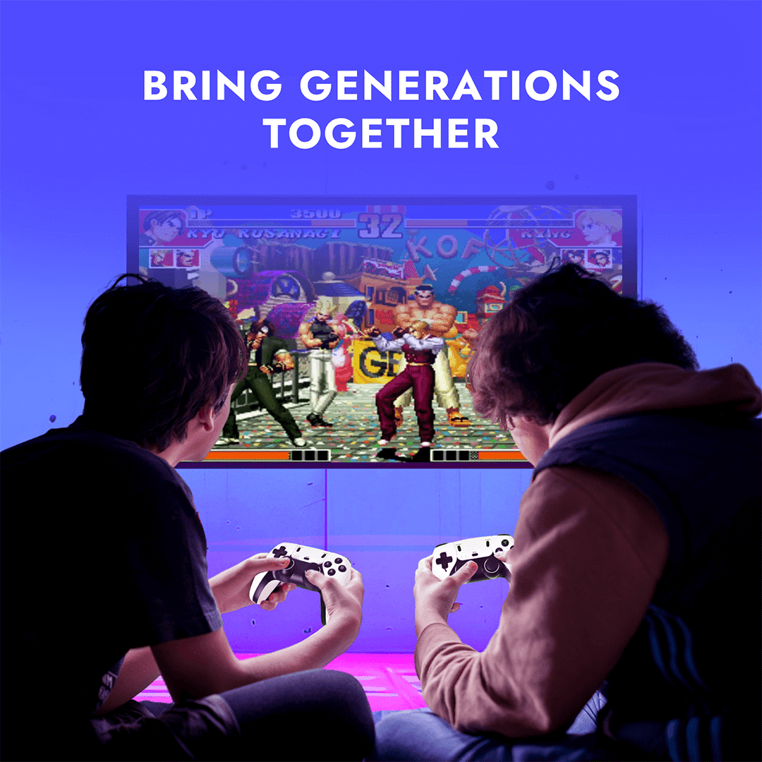 The device focuses on classic genres such as platformers, arcade shooters, racing, fighting, and puzzle games, bringing multiple generations of retro systems into a single plug‑and‑play device. Its small, portable form factor makes it easy to throw into a bag and use on any compatible TV at home, a friend’s place, or while traveling.