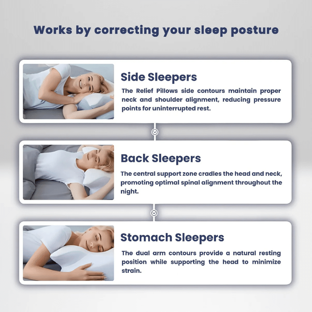 The Dreamers Relief Pillow works through several key features: